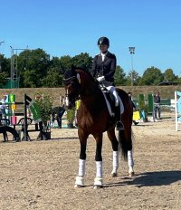 Benjamin Franklin (Z.: Wilhelm Kamps, Cuxhaven) feierte in Verden seinen ersten Turnierstart direkt mit einem Sieg. Janina Tietze präsentierte den bewegungsstarken, großrahmigen Bon Vivaldi – Royal Blend Sohn hervorragend in einer Reitpferdeprüfung. Für den Trab, den Galopp und das Gebäude gab es die 9,5! Für den Schritt vergaben die Richter eine 8,0, für die Ausbildung eine 8,5 und somit ging der Sieg mit einer Gesamtnote von 9,0 an Benjamin ...