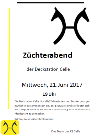 Fohlenschau des Pferdezuchtvereins Burgdorf mit Live- Übertragung Am Mittwoch, 21.6.2017, veranstaltet der Pferdezuchtverein Burgdorf ab 17 Uhr auf dem Gelände der Hengstprüfungsanstalt Adelheidsdorf seine Fohlenschau. Es werden die Fohlen von Spitzenvererbern aus dem Landgestüt Celle und einiger Privathengste gezeigt. Erstmals wird ein Preisgeld i. H. v. 2.500,00 € ausgeschüttet für alle Aussteller, die bereits in 2016 Mitglied waren. ...