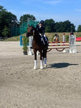 Gestern startete Barbarossa v. Bonds/For Romance I (Z.: Friederike Pelzer, Steinhorst) erstmalig auf einem Turnier. In einer Reitpferdeprüfung hat sich der Hannoveraner Prämienhengst mit der Konkurrenz in Verden gemessen und die Prüfung unter dem Sattel von Janina Tietze eindrucksvoll gewonnen. Sowohl der Schritt, die Ausbildung sowie das Gebäude wurden jeweils mit einer 9,0 bewertet, aber auch den Trab sowie den Galopp belohnten die Richter mit einer Wertnote von 8,5.