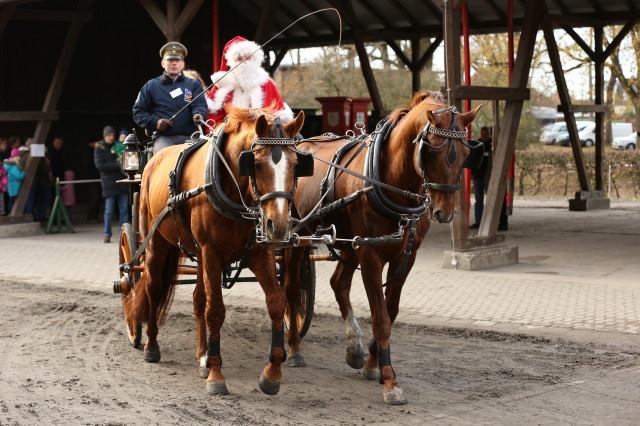 Viele fleißige Hände hatten wieder einen Weihnachtsmarkt der Sonderklasse geschaffen. Ob Kutschfahrten, Ponyreiten, Stockbrot backen, Märchen im Märchenwald hören, hochwertiges Handwerk, Kunsthandwerk oder der Besuch im Remisen-Café – hier war für jeden etwas dabei. Zahlreiche selbstgebackene Torten und Kuchen gingen über die Kuchentheke, ungezählte Bratwürste, Glühwein, Waffeln und vieles mehr wurde an diesem zweiten Adventswochenende verkauft. Regen Besucherandrang gab es zudem bei den kostenlosen Führungen durch das Gestüt. Halbstündlich starteten Gruppen von bis zu 70 Personen, um das Landgestüt und seine Geschichte kennenzulernen. Natürlich schaute auch der Weihnachtsmann vorbei und brachte die Kinderaugen zum strahlen.