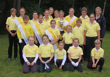Den Anfang machte Max Buße, der in der Klasse „Pony jung I“ mit seinem Pony Galotti sich an die Spitze setze. Schwester Leonie Buße zog nach und siegte mit Amaryllis in der Kategorie Pferd. Beide zeigten sich nicht nur im Vorführen mit sehr guten Leistungen, in der Theorie gab es bei beiden eine glatte 10 – da hat sich das Üben aber mehr als gelohnt! Aber auch Lena Edzards und Lea Brockmann holten für ihren Verein den Bezirksmeistertitel – Lena in der Klasse „Pony jung II“ mit Dino und Lea mit Aladin in der Klasse „Pony jung III“. Zudem siegte die Mannschaft Celle-Südheide II auch in der Mannschaftswertung. Alle Teilnehmer der Mannschaftswertung wurden auch einzeln in Abteilungen gewertet und hier machten die Celler Jungzüchter quasi den „Sack zu“: Ann-Kristin Knopp und Miriam Deecke holten die letzten der sieben Titel für den hiesigen PZV.