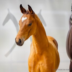 Lot 84 „Dorfkind“ v. Diacontinus – Qualito I (Z.: Jörg Sültemeier, Trebel) lässt besonders Springreiterherzen höherschlagen. Der Stutenstamm dieses Hengstfohlens weist hochkarätige Springpferde auf: Concona v. Conthargos (intern. 1,60m mit Ben Maher erfolgr.), Chavira PS v. Chacco-Blue (intern. bis 1,55m mit Harry Charles erfolgr.) und viele mehr.