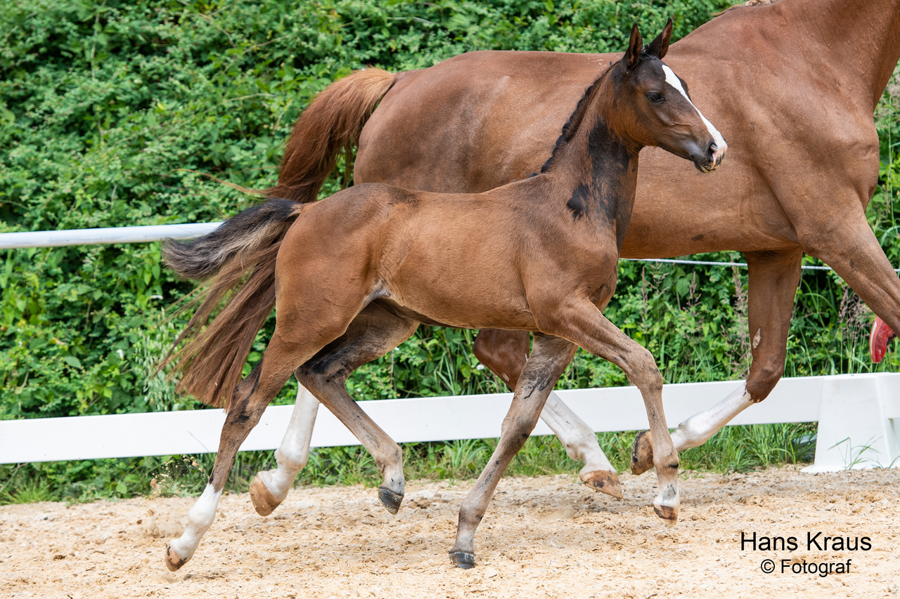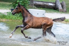 Das einzige springbetonte Fohlen der anstehenden Auktion „Powerpuff Girl FH“ (Z: Franz Holzleitner, Desselbrunn/AT) erfüllt die Auswahlkriterien in jeder Hinsicht. Ihr Vater, der Jahrhunderthengst Contendro I, brachte bereits Sportpferde, die in allen Sparten der Reiterei hocherfolgreich sind. Dies in Kombination mit der Staatsprämienstute „Pearl“ v. Limoncello I, die vier- und fünfjährig Finalistin auf dem österreichischen Bundeschampionat in der Dressur war, lässt keine Wünsche offen. Ergänzend präsentiert sich das Stutfohlen selbst mit sehr kraftvollen Bewegungen, besonders aus der Hinterhand.