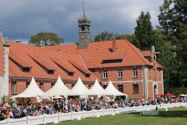 Der Freitag stand ganz im Zeichen der Kinder: Zusammen mit dem Verein „Pferde für unsere Kinder e.V.“ fand ein bunter Kindertag mit vielen Höhepunkten statt. Schon zur Öffnung der Tore strömten Groß und Klein auf das Gelände, um die besondere Atmosphäre des Gestütes gemeinsam zu erleben. Der großzügige Kinderbereich bot einige Mitmach-Aktionen, die Kinderherzen höherschlagen lassen: Hufeisen bemalen, eine Kinderrallye, Steckenpferde basteln, Hobby Horsing sowie die Möglichkeit, mit einigen Shetland-Ponys bei Streicheleinheiten oder einem Führparcours auf Tuchfühlung zu gehen. Auch einige Schaunummern rund ums Thema „Pferd“ begeisterten die Kinder, darunter ein Pas de Deux mit Pony und Pferd und die Niedersächsische Ponyquadrille. Kinderaugen strahlten, als einige der Ponys nach ihrem Auftritt bei einem Meet & Greet auf dem Paradeplatz hautnah zu erleben waren. Kurz vor der großen Dressurquadrille wurde es spannend: Die Preisverleihung des Mal- und Bastelwettbewerbs für Kindergärten fand auf dem großen Paradeplatz statt. Über den Hauptgewinn durften sich die Kita Naturzauber der Lebenshilfe Walsrode sowie der Heilpädagogische Kindergarten Purzelbaum der Lebenshilfe Celle freuen. Mit ihren kreativen Einsendungen gewannen die Kitas jeweils ein Holzpferd mit umfangreichem Lernkoffer rund um das Thema „Pferd“, vier weitere Kitas durften einen toll ausgestatteten Kinderputzkoffer entgegennehmen. Einen runden Abschluss des ersten Tages stellte die Junghengstpräsentation dar, bei der sich die vielversprechenden 3- & 4-jährigen Hengste vor der Kulisse des Paradeplatzes ausgezeichnet präsentierten.