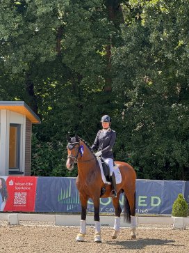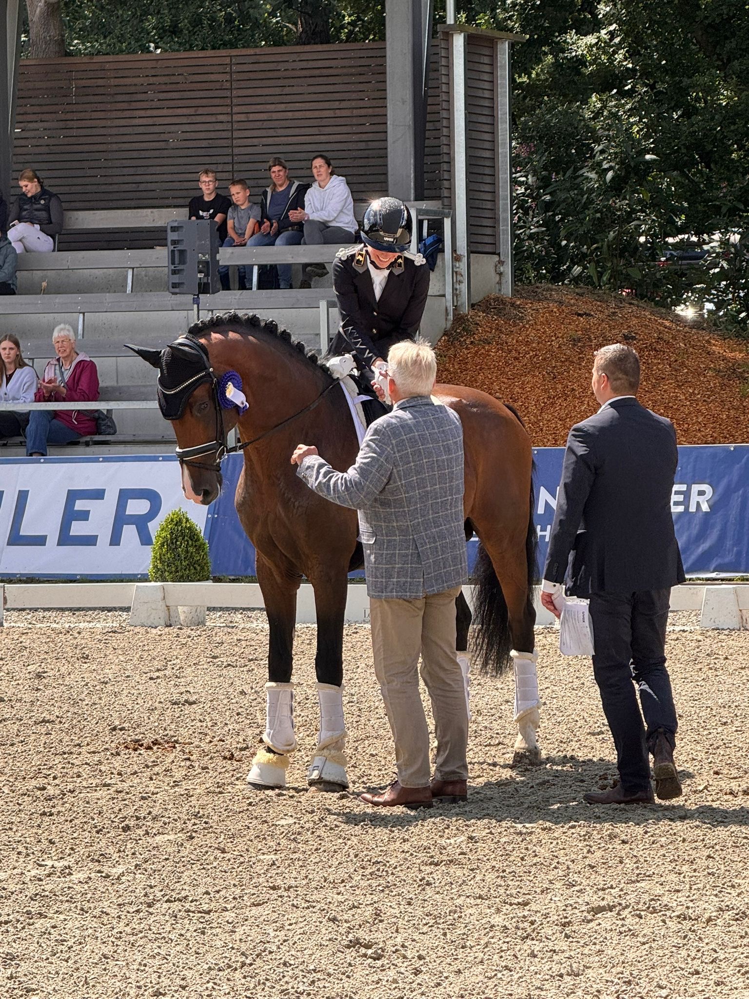 Ganz besonders freuen wir uns, dass sich am Freitag Eastwood v. Escolar – Vitalis (Z. Leo Hermanns, Aldenhoven) unter Janina Tietze in der Dressurpferdeprüfung der Kl. M zum Bundeschampionat der 6-jährigen Pferde qualifizieren konnte. Ihre starke Runde wurde von den Richtern mit einer Wertnote von 8,16 und dem vierten Platz belohnt.