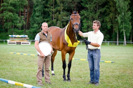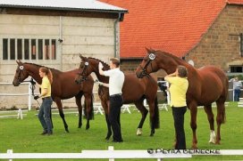 Die Stutenschau in Hohnstorf musste auf Grund des Hochwassers nach Brietlingen verlegt werden. Doch das tat der Schau keinen Abbruch. Insgesamt stellten sich 48 hochkarätige Stuten und zwei Familien dem Urteil der Richter. Siegerin der springbetonten Stuten wurde eine vierjährige Conteur-Tochter. Ganggewaltig, mit viel Dynamik und Ausdruck versehen, präsentierte sie sich der Kommission bestehend aus Herrn Dr. W. Schade, Frau S. Handke und Herrn H.-H. Brüning. Einen ganz besonderen Ehrenpreis durfte die Gesamtsiegerin der Schau, eine Don Frederico-Tochter aus dem Stall von Ernst-Diedrich Paulus, mit nach Hause nehmen. Ihr überreichte Gestütsassistentin Frau Handke einen Deckgeldgutschein des Celler-Redefiner-Marbacher-Landbeschälers FÜRSTENHOF. Der Familienwettbewerb stellte den Zuschauern zwei hochwertige Familien vor. Letztendlich ging der Sieg an die typvollen drei Töchter der Mutter Whoopy. Die Glückwünsche gingen an die Züchter und Aussteller Christiane und Herbert Vick, Tespe.