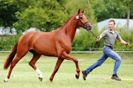 Rechtzeitig zu der Stutenschau in Bodenstein Anfang Juni wurde "oben das Wasser abgestellt“. Die Qualität der gezeigten Stuten war herausragend. Von 25 Einzelstuten bekamen 17 Stuten das Prädikat 1a und 13 Stuten wurde die Anwartschaft auf die Staatsprämie verliehen. Besonders erfreulich war, dass drei Familien ausgestellt wurden. Freunde des Vollblüters sahen zwar nur 3 Halbblutstuten, diese konnten aber mit einem Sieg in der Klasse der 4-6 jährigen Stuten (Lauries Crusador xx) und dem Sieg im Familienwettbewerb (2 x Nobre xx) auftrumpfen. Die drei Richter Herr Rump, Herr Winter und Herr Hahne zeigten sich begeistert von dem, was die kleine AG Bodenstein an diesem Tag gezeigt hat. Wir gratulieren allen Züchtern ganz herzlich zu diesem herausragenden Ergebnis!