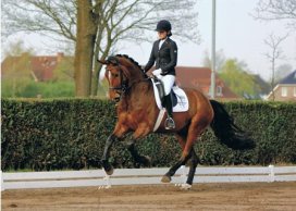 Mit dem Schwarzbraunen "Deep Purple" kommt aus Bellen ein Feuerwerk an bewegender Qualität auf das Viereck, der seinen Namen in jeder Hinsicht zu recht trägt und an die rockenden Heroen der siebziger Jahre in frappierender Weise erinnert: Da ist Musik drin und sein Auftritt wird zum Erlebnis. Zwei Siege in Dressurpferdeprüfungen der Klasse L mit Wertnoten von 8,5 lassen für den fünfjährigen Don Frederico-Sohn (Mutter von Weltruhm - Forrest xx, aus der Zucht der Familie Hecker, Oebisfelde) eine aussichtsreiche Turniersaison erwarten. Der Sieg der Qualifikationsprüfung zum Bundeschampionat auf dem Anakenenhof in Pinneberg hoben das Potential dieses Celleraners merklich in den Blickpunkt der Zuschauer. Seine Reiterin: "Er ist schon ein ganz Besonderer. Wohl der Beste, den wir bisher hatten!" Esther Maruhn möchte "Deep Purple" nun während der Sichtung für die Weltmeisterschaft der Jungen Dressurpferde Mitte Juni in Warendorf präsentieren.