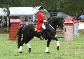 Einen spontanen Auftritt im Wendland hatten Earl und Eckhart Wrede. In Lüchow-Dannenberg fand zeitgleich mit dem Bundeschampionat das alljährliche Reitturnier des RFV Dannenberg statt. In Springen und Dressur bis S* ausgeschrieben, zieht das spätsommerliche Turnier viele pferdebegeisterte Zuschauern an. Auch viele Züchter nutzen die Gelegenheit zur „Nachzuchtbesichtigung unter Turnierbedingungen“. So ließ der Deckstellenvorsteher aus Splietau es sich nicht nehmen, seinen Paradehengst Earl jeweils am Samstag und Sonntag vor großem Publikum zu präsentieren. Da Earl ansonsten in Bargstedt aufgestellt ist, war dies der erste Auftritt des statiösen Rappen im Wendland – und er konnte mit seiner Ausstrahlung und Mechanik die Zuschauer in seinen Bann ziehen. Zeitgleich sicherte sich sein Sohn Eloy aus einer Wendenburg-Mutter, Zü: Johann Fuseler, unter Christin Schütte die Bronzemedaille beim Bundeschampionat der fünfjährigen Dressurpferde.