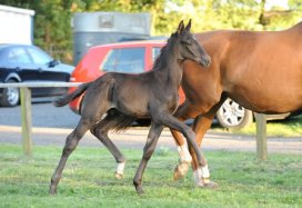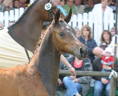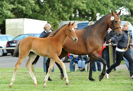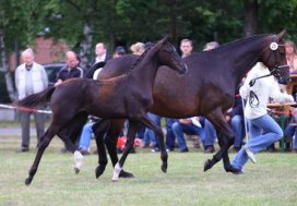 In Bargstedt wird traditionell eingebettet in das Bargstedter Reitturnier das Siegerfohlen der Fohlenschauen in Großenwörden und Bargstedt durch den Pferdezuchtverein Stade –Altes Land e.V. gekürt. Am vergangenen Sonntag war es wieder soweit und die Siegerfohlen und Reservesieger der jeweiligen Klassen traten gegeneinander an. Obwohl mit For Edition – Der Lenz (Zü: Johann Aldag, Ahlerstedt), Uccello – For Edition (Zü: Detlef Jark, Drochtersen-Niederhüll) und zwei Fohlen von Comte (Comte – Drosselklang II, Zü: Joachim Demuth, Düdenbüttel; Comte – Landfürst, Zü: Hinrich Jark, Engelschoff) viele Fohlen mit Springabstammungen vertreten waren, überzeugte vom Fleck weg eine Dancier-Tochter. Aus einer Lauries Crusador xx-Mutter von Lüder Köpke (Stade) gezogen, überzeugte sie mit einer großen Mechanik und Leichtigkeit im Antritt.