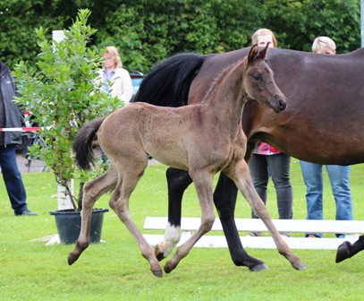 Einen hochwertigen Schlussring bildeten auch die dressurbetonten Fohlen. „Jedes von ihnen könnte auf anderen Plätzen das Siegerfohlen werden“, kommentierte Reinhard Baumgart. Bei den Stutfohlen trug den Sieg ein Fohlen von San Amour I aus einer Rotspon/Lauries Crusador – Stute (Erika Langhans, Münster) davon, dicht gefolgt von einem ebenfalls sehr bewegungsstarken Fohlen von Deveraux-Londonderry aus der Zucht von H. H. v. d. Decken, Stade. Die Hengstfohlen wurden angeführt vom Vollbruder des Vorjahressiegers, einem lackschwarzen Bewegungskünstler von Fürst Nymphenburg aus einer De Niro – Mutter, Züchter J. v. d. Decken, Krummendeich. Reservesieger wurde ein Hengst von Spörcken aus einer Mutter von Rotspon/Lemon Park aus der Zucht von Alfred Reimann.