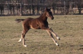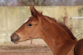 Weiter geht es mit einem Stutfohlen von Check In. Das bei Holger Siems geborene Fuchsstutfohlen ist mütterlicherseits über Concetto - Graf Grannus gezogen. Ein sehr schicker schon gut entwickelter Typ mit tollen, lockeren Bewegungen. Wir gratulieren ihrem Züchter Holger Siems, Sebbenhausen recht herzlich!