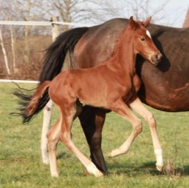 Auch das nächste Stutfohlen aus einer Wolkentanz II x Wanderbursch II – Mutter kann ihren Vater nicht verleugnen! Quaterhall wie aus dem Gesicht geschnitten vereint auch sie alle positiven Eigenschaften des Spitzenvererbers. Ihr Züchter Gerd Rolfes aus Spahnharrenstätte ist sehr stolz auf dieses tolle Fohlen, sodass er die Stute gleich wieder von Quaterhall besamen lassen hat. Wir gratulieren Herrn Rolfes recht herzlich!