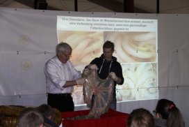 Ein Thema das alle Reiter und Züchter beherrschen sollten spricht Frau Dr. Martinsson vom Landgestüt Celle an – „Erste Hilfe am Pferd“. Fragen wie „Was tun nach einem Unfall?“ und „Wie lege ich einen Druckverband an?“ werden behandelt und demonstriert. Das hier erworbene Wissen hilft, im Ernstfall die Ruhe zu bewahren, besonnen zu handeln und so vielleicht sogar ein Pferdeleben zu retten.