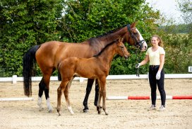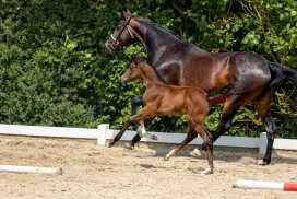 Aber auch Interessenten von springbetonten Fohlen gehen nicht leer aus. Es stehen Nachkommen von Diacontinus, Valensky und Nairobi de Muze zum Verkauf. Mit „Velvet’s Pleasure v. Valensky/Forsyth (Z: Jacqueline Handt, Friedland) wird ein vielversprechendes Stutfohlen angeboten, dessen Mutter gleich mehrere international erfolgreiche Geschwister hat.