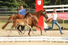 Bei den Dressurfohlen wurde die Qualität deutlich. Typschön, sehr korrekt, auf gutem Fundament stehend, überzeugte ein Hengstfohlen von Benicio-De Niro-Eiger I aus der Zucht von Friederike Pelzer das Richterteam. Auch das Publikum zollte durch Applaus die hervorragende Bewegung dieses Youngsters. Enrico Messelis stellte ein Stutfohlen von Fürstenball aus einer Sir Donnerhall I-White Star Mutter vor und konnte sich ebenfalls mit seinem Fohlen für ein Ticket für das begehrte Championat qualifizieren.