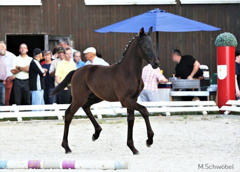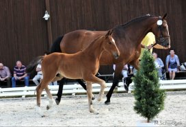 Den Ring der dressurbetonten Stutfohlen führte mit einer fuchsfarbenen Tochter des Don Olymbrio/ Fidertanz eine Tänzerin allererster Güte an. Mit Ausdrucksstärke und lockeren, federnden Bewegungen nahm sie die Richter für sich ein. (Züchter u. Besitzer: Moritz Gaus, Großmoor) Aus Hänigsen und der Zucht von Herbert Schaprian folgt auf Platz 2 ein hochedles, sehr typ- und bewegungsstarkes Fohlen von Sarotti Mokka Sahne / Fürst Nymphenburg. Don Martillo/ Don Frederico ist die Abstammung des Drittplatzierten Stutfohlens aus der Zucht von Heinrich Habermann, Obershagen. Weit entwickelt, stabil, pragmatisch und mit gutem Bewegungsablauf, so der Richterspruch. Er kam, sah und siegte, so kann man den Auftritt des Siegerhengstfohlens im Bereich Dressur beschreiben. Fürst Belissaro/ Stedinger ist die Abstammung dieses qualitätvollen Braunen, der mit überragendem Bewegungsablauf, jederzeit elastisch bis in die Hufspitzen, auch im Schritt überzeugte. (Z. u. B: Folke Jaedicke, Uetze) Auf Platz 2 sahen die Zuschauer ein sehr elegantes, bewegungsstarkes Rappfohlen von Livaldon/ Don Frederico aus der Zucht von Heinrich Bührke und heute im Besitz von Melanie Myschker, beide Endeholz. Aus Pattensen angereist war der 3. im Bunde: Secret/ Don Primero ist die Abstammung dieses vielversprechenden Youngsters aus der Zucht von Hartmut Struß.