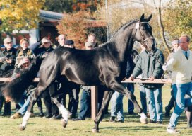Sein Züchter, Hans-Heinrich Müller konnte diesen Erfolg leider nicht mehr selbst erleben. Stellvertretend nahm seine Frau Christiane die Auszeichnung entgegen. Begleitet wurde Rotspon durch seinen jahrelangen Begleiter Obersattelmeister Jürgen Ilper. Und noch einen „guten Bekannten“ traf der Hengst am Wochenende in Verden. Der neue Vorsitzende des Hannoveraner Verbands, Hans-Henning von der Decken, zeichnete mit Rotspon einen Hengst aus, den er vor genau 20 Jahren selber auf dem Hengstmarkt in Verden vorstellte.