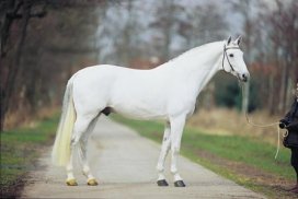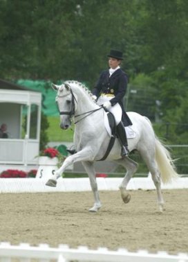 Durch den ganzen Körper schwingende, raumgreifende Bewegungen zeichnen diesen Schimmelhengst aus. Über seinen Vater Silvano erbte er die positiven Schätzwerte wie unbegrenzte Lernbereitschaft, großen Ehrgeiz und exzellente Rittigkeit.