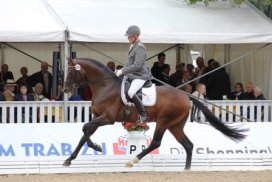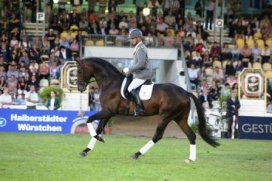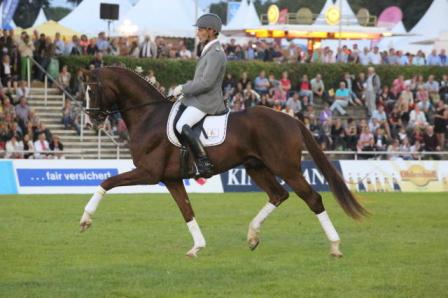 Im Finale des Hannoveraner Reitpferde-Championats für 4-jährige Hengste spielten Sarotti Mokka Sahne und Mike Habermann noch einmal ihre Vorzüge aus. Mit seinen schwingenden, raumgreifenden Bewegungen, seinem Chic und dem modernen Exterieur hatte Sarotti auch schnell die Richter auf seiner Seite. Trab 9,0, Galopp 8,0, Schritt 8,0, Ausbildung 8,5, Körperbau 8,0, Gesamt 8,4 und damit Platz 4 lautete das tolle Endergebnis. Mit dieser fantastischen Runde wurde Sarotti ebenfalls für das Bundeschampionat 2013 nominiert. „Hannoveraner Reitpferde-Champion 2013“ darf sich der Dancier-Sohn Dancing World nennen.
