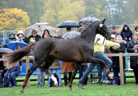 Ausgesprochen gut präsentierte sich ebenfalls der Landbeschäler Gandhi. Mit einer 8,0 im Schritt, 8,5 im Trab und einer 8,13 in der Rittigkeit, offenbarte der Dreijährige sein Potential. Dies bescherte ihm einen HLP Zuchtwert Dressur von 131 und damit unter den TOP 10 bundesweit! Gandhi wird am 14.1. in Verden zur Anerkennung vorgestellt.