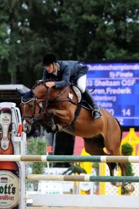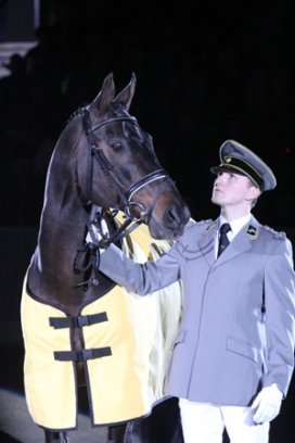 So charakterisiert ihn sein Ausbilder und bisheriger Reiter 1. HSM Joachim Winter. Insgesamt mehr als 250 Schleifen pflastern den Erfolgsweg des Paares. Dabei war der Weg in den Springsport schon klar auf der Körung vorgezeichnet. Geboren wurde der Dunkelbraune 1999 auf dem Hof von Gerd Odlozinski in Neustadt a. Rbge. Stolzenberg war Springsieger und Reservesiegerseiner Körung und der erste Hengst, den Landstallmeister a.D. Dr. Burchard Bade nach dem Wegfall des Celler Lots auf dem freien Hengstmarkt 2001 in Verden erwarb. Und er sprengte damals mit einem Kaufpreis von 310.000 Euro fast das Budget.