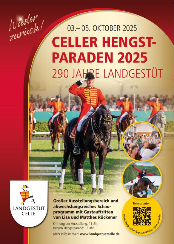 Ostern steht vor der Tür – und damit auch die Frage nach dem passenden Geschenk. Warum nicht etwas Besonderes schenken, das noch lange in Erinnerung bleibt? Mit Tickets für die traditionsreiche Celler Hengstparade 2025 verschenken Sie ein außergewöhnliches Erlebnis voller Eleganz, Kraft und Emotionen. Nach mehrjähriger Pause kehrt die Parade vom 3. bis 5. Oktober 2025 endlich zurück auf den Paradeplatz des Landgestüts Celle – und verspricht ein eindrucksvolles Pferdesport-Event zum 290-jährigen Bestehen des Gestüts.