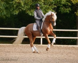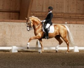In goldgelber Jacke und wunderschön gezeichnet, sticht das schwedische Warmblut Zafferano jedem sofort ins Auge. Doch der Palominohengst macht nicht nur durch sein Erscheinungsbild auf sich aufmerksam, der 11-jährige Sohn von ZaladinMI -Bernstein –Chagall kann Siege in Intermediaire I und Platzierungen im Grand Prix Sport vorweisen.