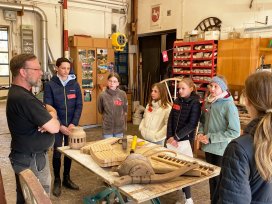 Danach wurden die Kinder in 4 Gruppen aufgeteilt und sie haben Einblicke in die verschiedenen Berufsfelder bekommen. In der Wagnerei bei Olaf Schlote haben sie gelernt, wie die Kutschen instandgehalten werden oder ein Wagenrad gebaut wird. In der Schmiede durften alle mit Hilfe von Lüder Springhorn, Hufnägel selber machen und ordentlich mit anpacken. Im Stall drehte sich dann alles noch einmal rund um die Hengste. Futterkunde, Pflege der Pferde oder auch die Ausstattung stand hier auf dem Plan. Unser Mitarbeiter Thomas Wall hatte Äpfel, Möhren und Haribo besorgt, sodass alle bestens versorgt waren. Als Highlight durften die Kinder dann noch die traditionellen Uniformen anprobieren und sich einmal wie ein waschechter „Gestüter“ fühlen. Im Anschluss an die Stationsarbeiten wurde gemeinsam im Stall zu Mittag gegessen und der Tag mit einer kleinen Rallye abgeschlossen.