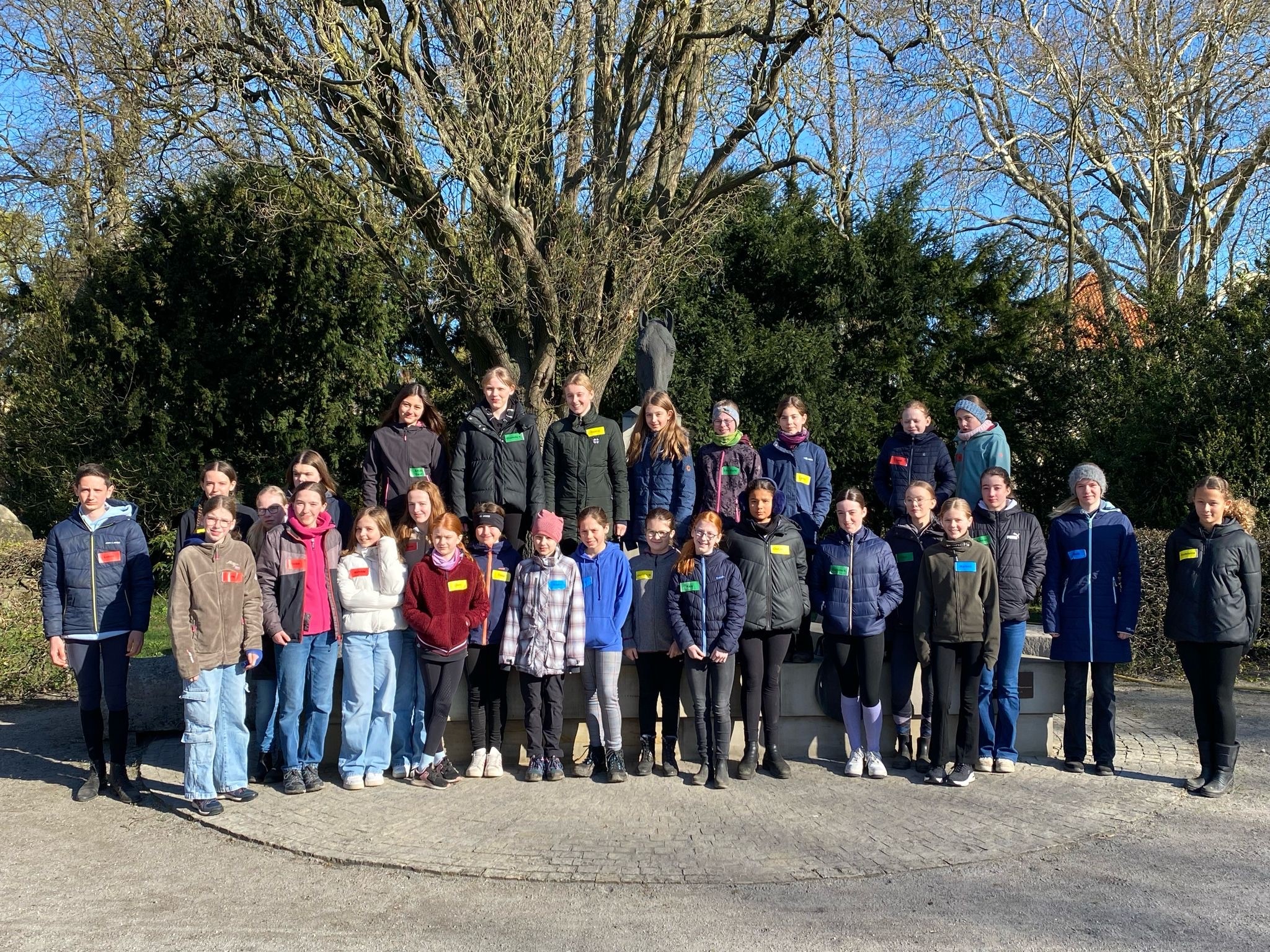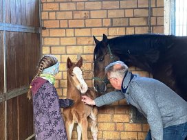 Am Donnerstag haben 30 Kinder und Jugendliche ihren Zukunftstag im Landgestüt Celle verbracht. Bei strahlendem Sonnenschein ging es mit einer Führung durch unseren Landstallmeister Dr. Brockmann los. Die Kinder durften die frisch geborenen Fohlen streicheln und für sie Namensvorschläge abgeben. Danach ging es zu den Kutschen, die alle einmal probe gesessen werden durften. Nach der spannenden Führung, erwartete die Gruppe bereits ein junges Pferd v. Fürst Belissaro in der historischen Reithalle. Dieses wurde von unserer Mitarbeiterin Susanne Ersil vorgeritten und Emma Reupke erklärte von unten haargenau, was bei der Ausbildung von Pferd und Reiter zu beachten ist und beantwortete ausführlich alle gestellten Fragen.
